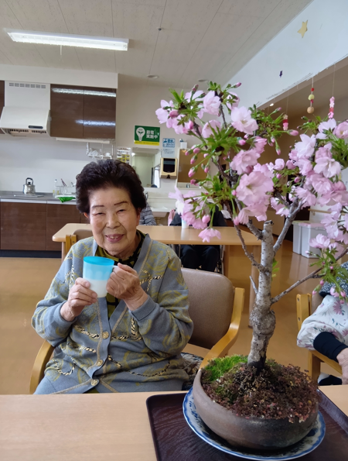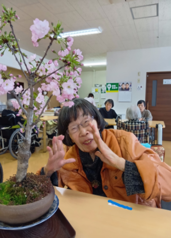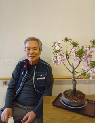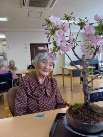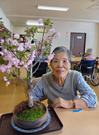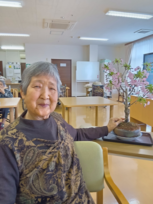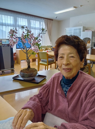 ご入居者様には、桜の盆栽を鑑賞して頂き、記念写真。