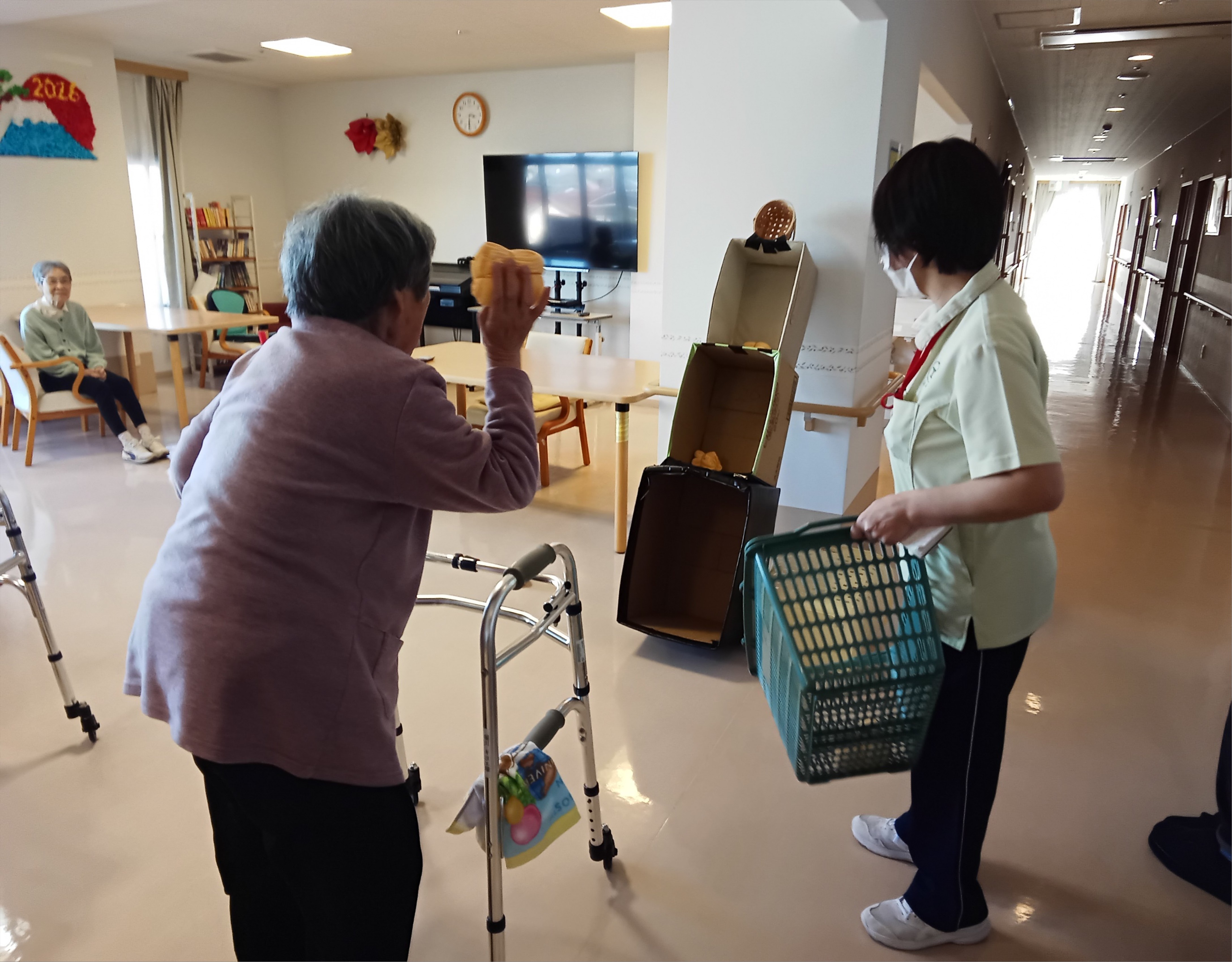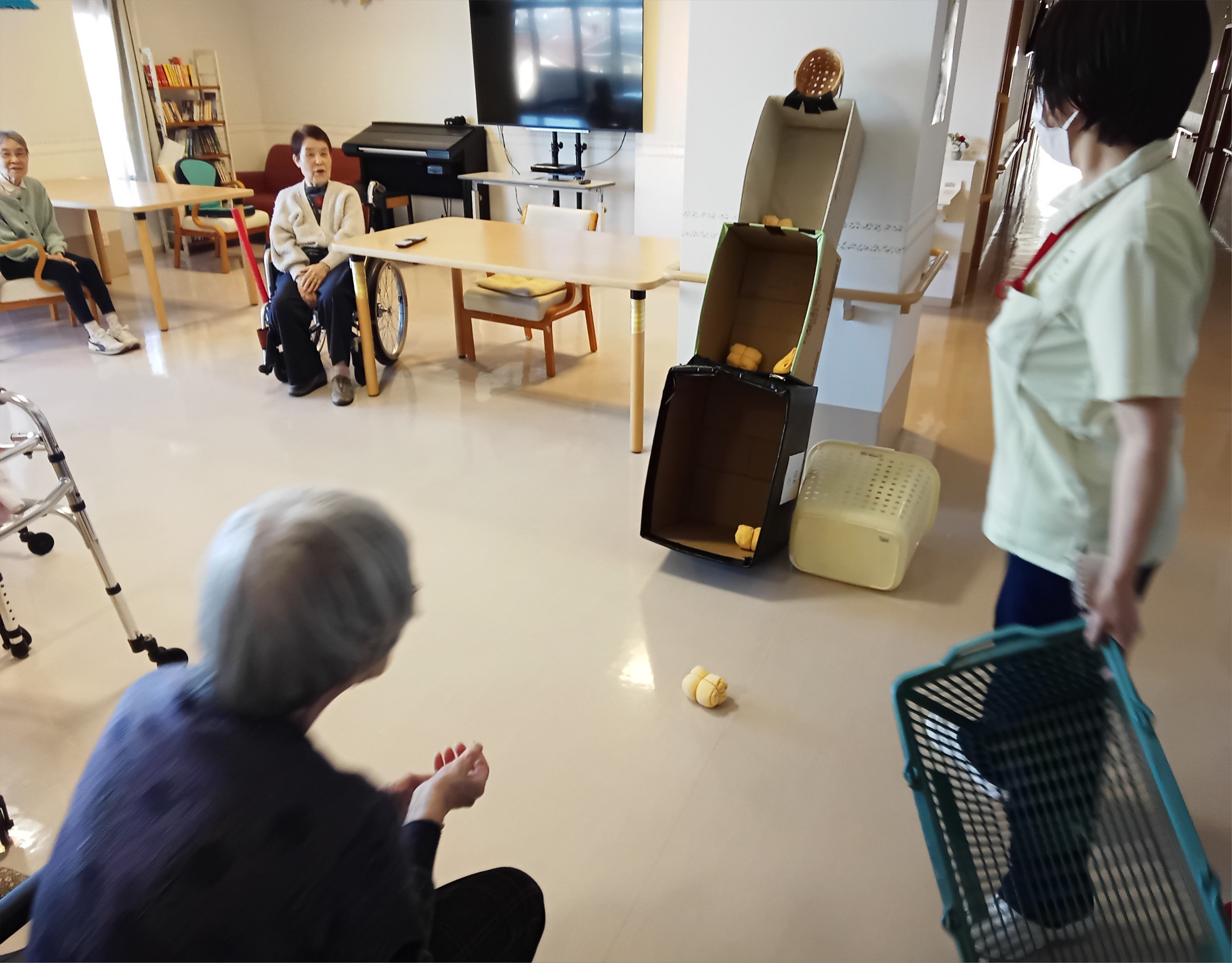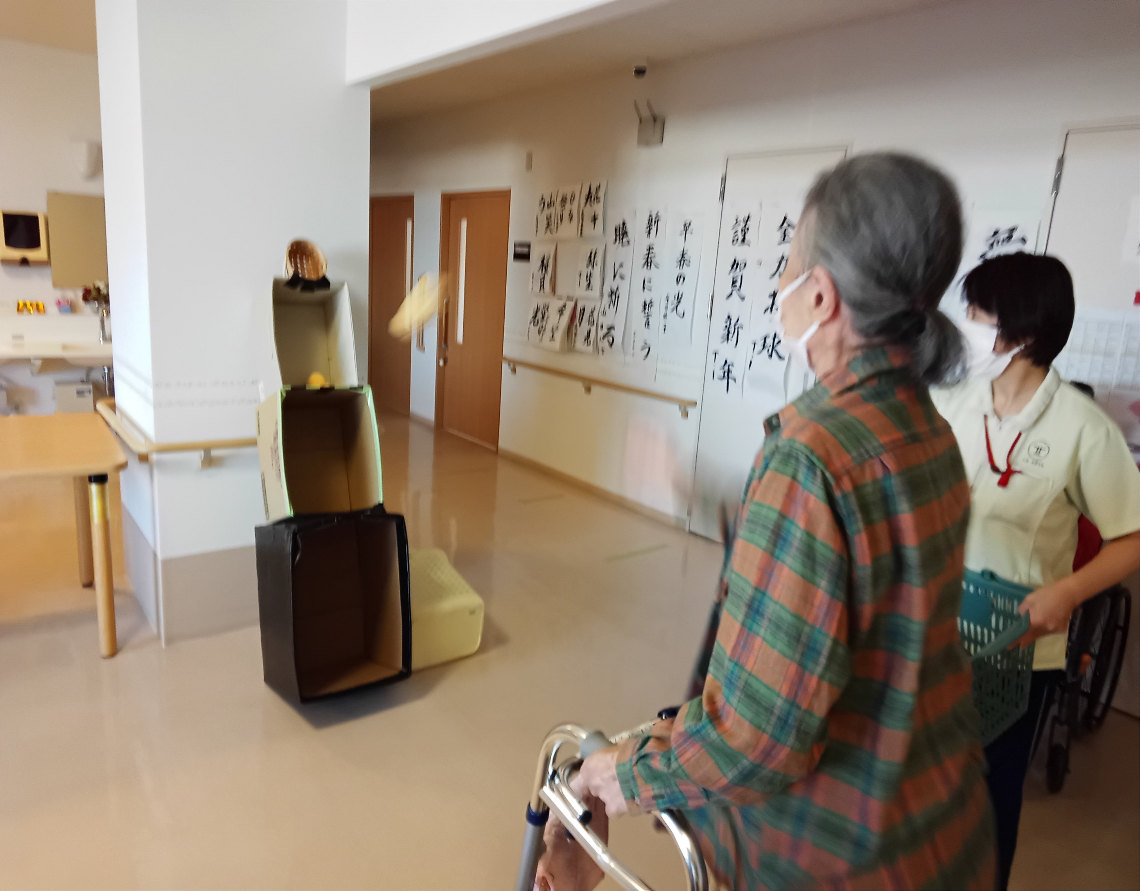 入居者様は各々自分の腕の動かせる範囲で大きく腕を振って頑張って投げておられました。
