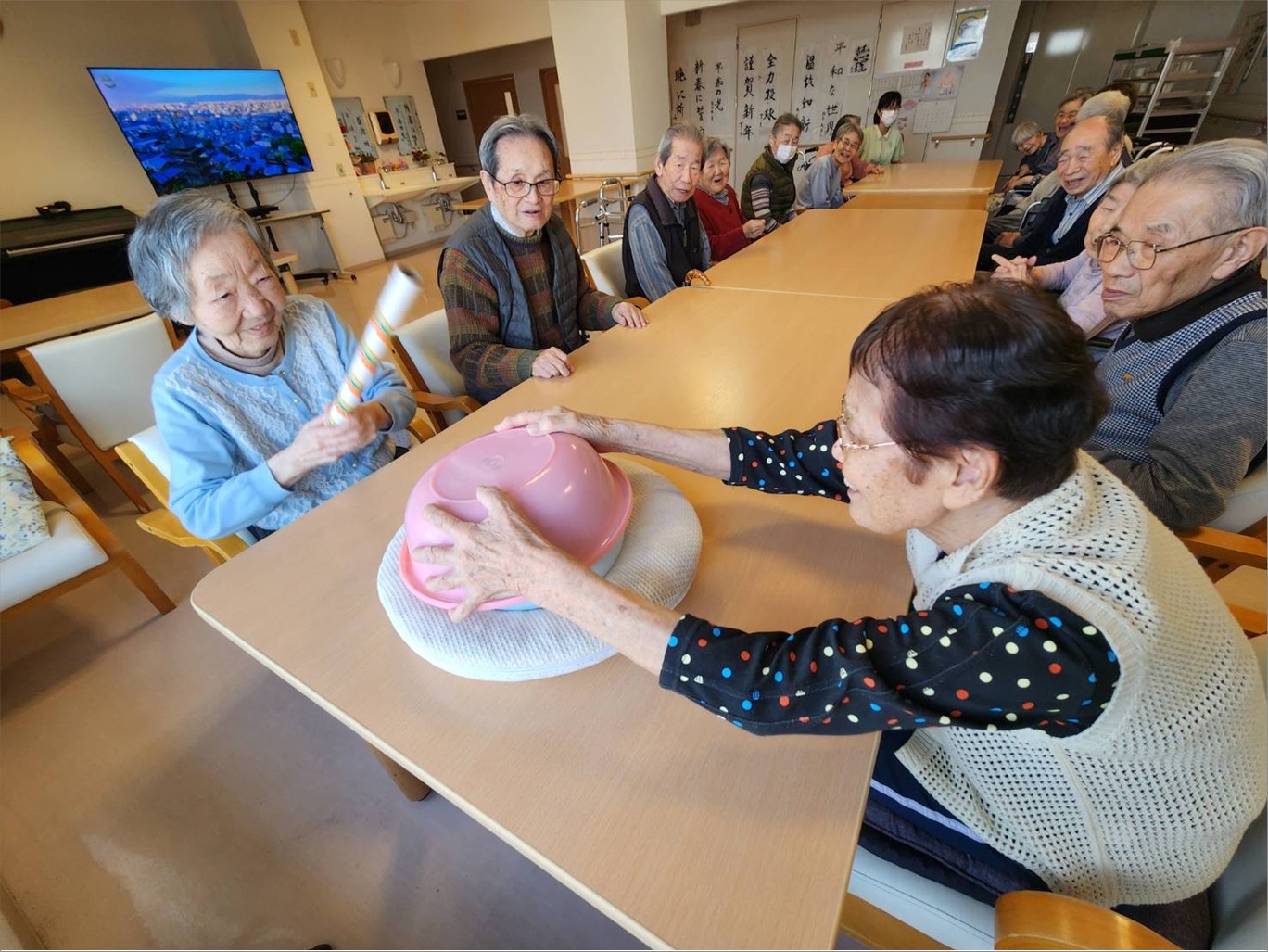 途中、おどけて洗面器を被ってしまう方もいらっしゃり‼( ´艸`)