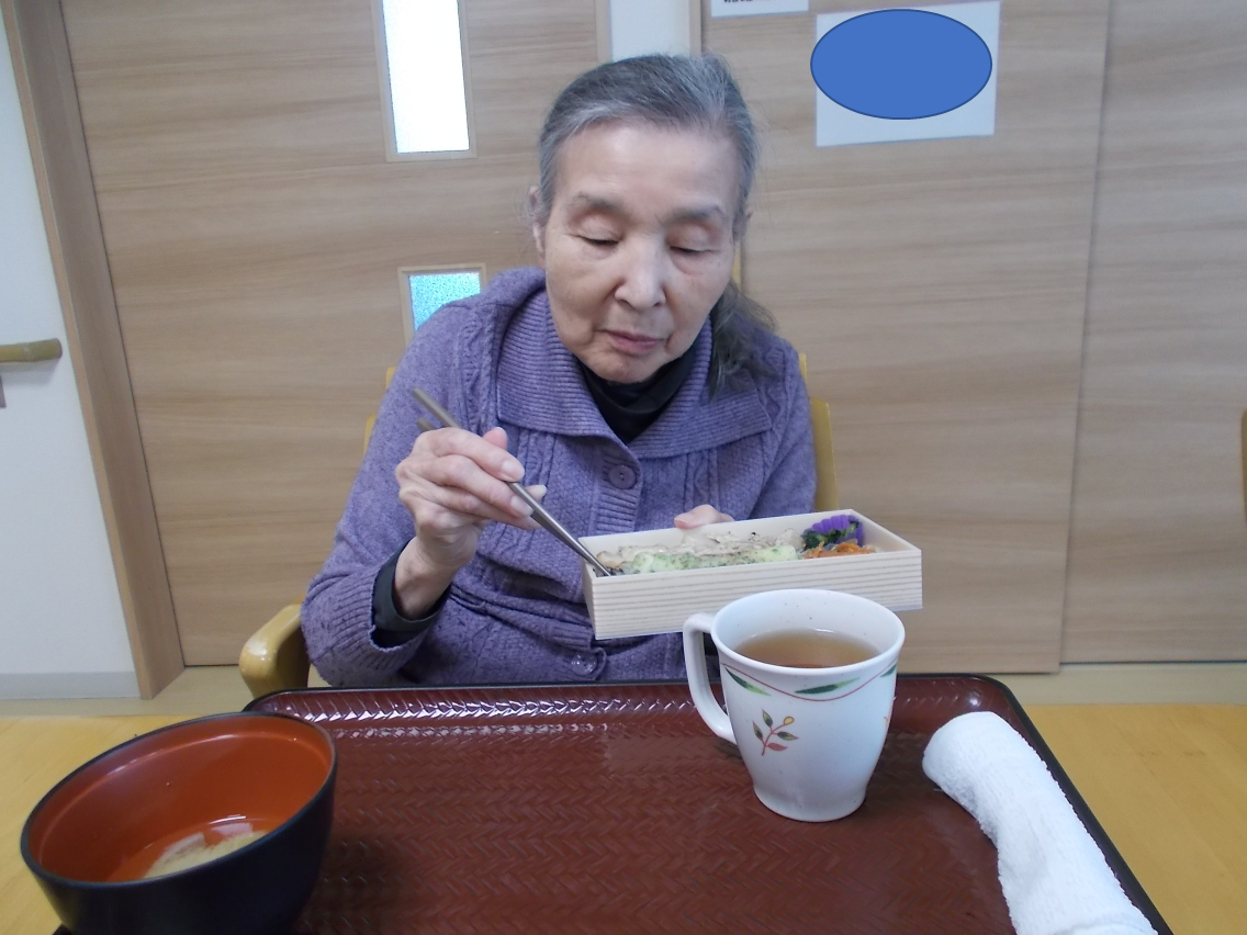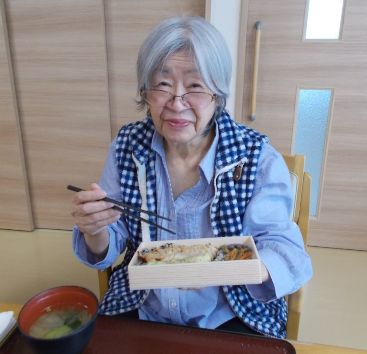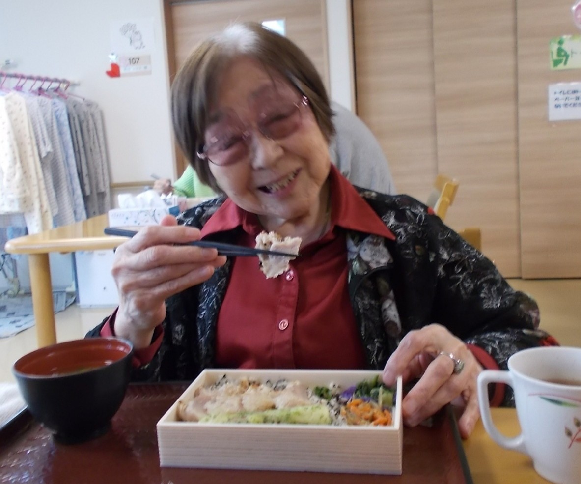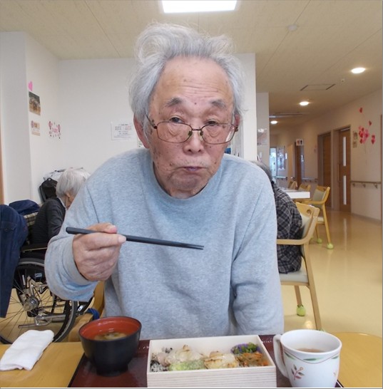 さて、入居者様方が美味しそうなお弁当を召し上がっている様子がこちらです。