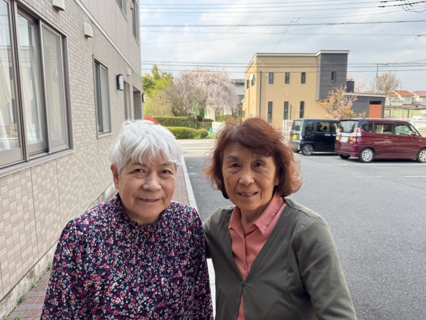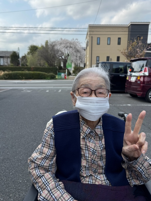 施設の近くに桜がきれいに咲いているので、遠くからですが一緒に写真撮影。