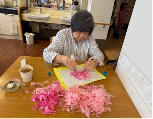今回、当施設では貼り絵レクを行いました!