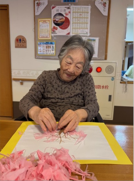 春らしいお題で桜の絵を貼り絵で表現しました。