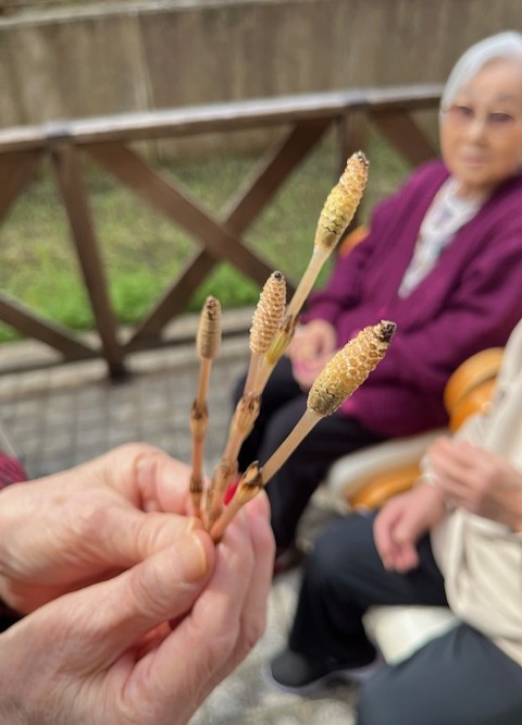 つくしがいっぱい生えていたり、右側にはさくら館のモクレンの白い花も咲いていました。