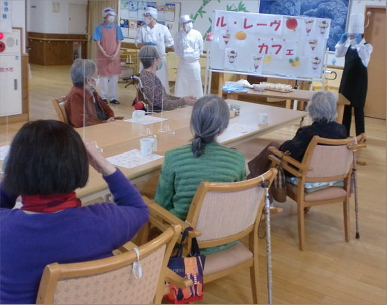 シェフの登場とル・レーヴカフェの看板をみると、ご利用者様も今から何が始まるのかとワクワクです♡