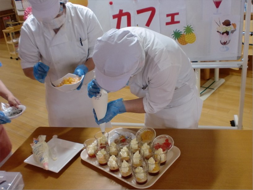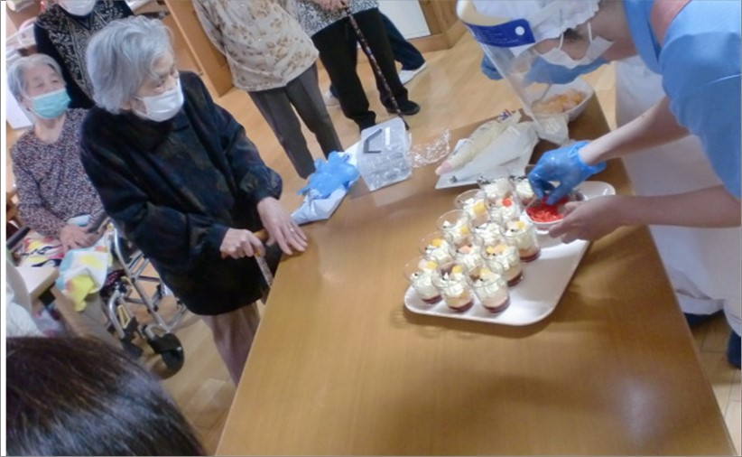 大好評!!おやつレクリエーション!!シェフお手製のフルーツパフェ♡