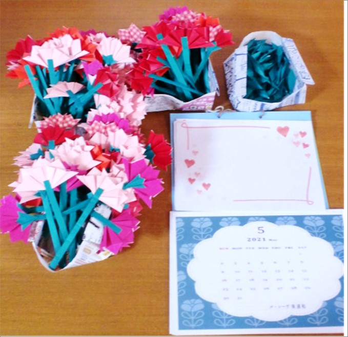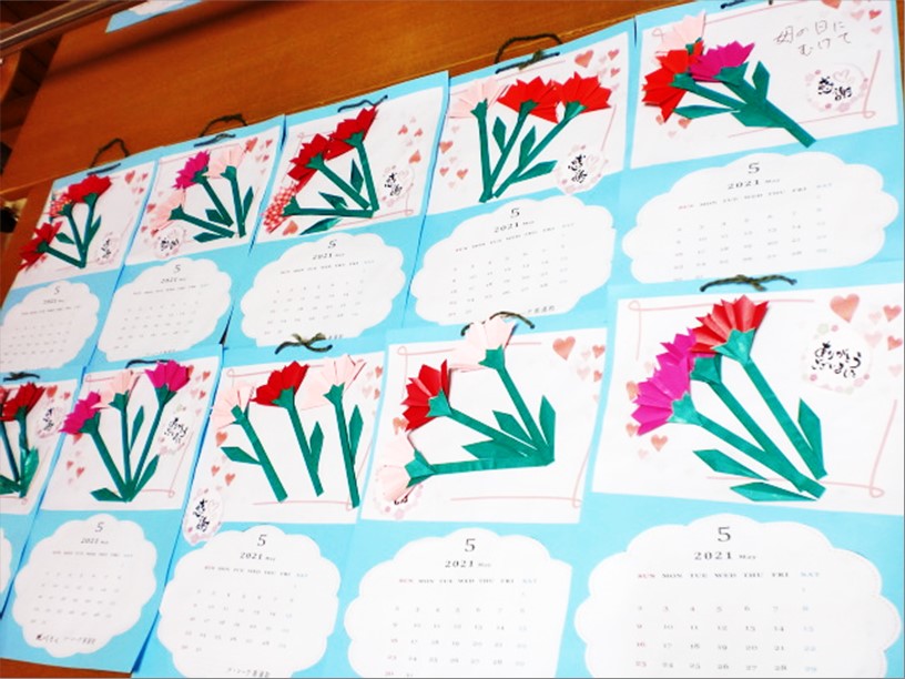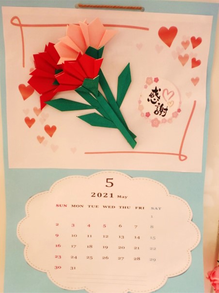 「毎月のカレンダーとても楽しみで今回もきれいなカーネーションカレンダーができてすごく喜んでいました」