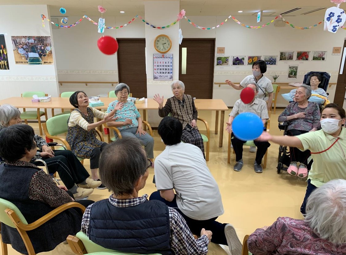 『ル・レーヴふじみ野』では、ゴールデンウィーク明けの5月10日(月)、11日(火)で風船バレーを行いました。