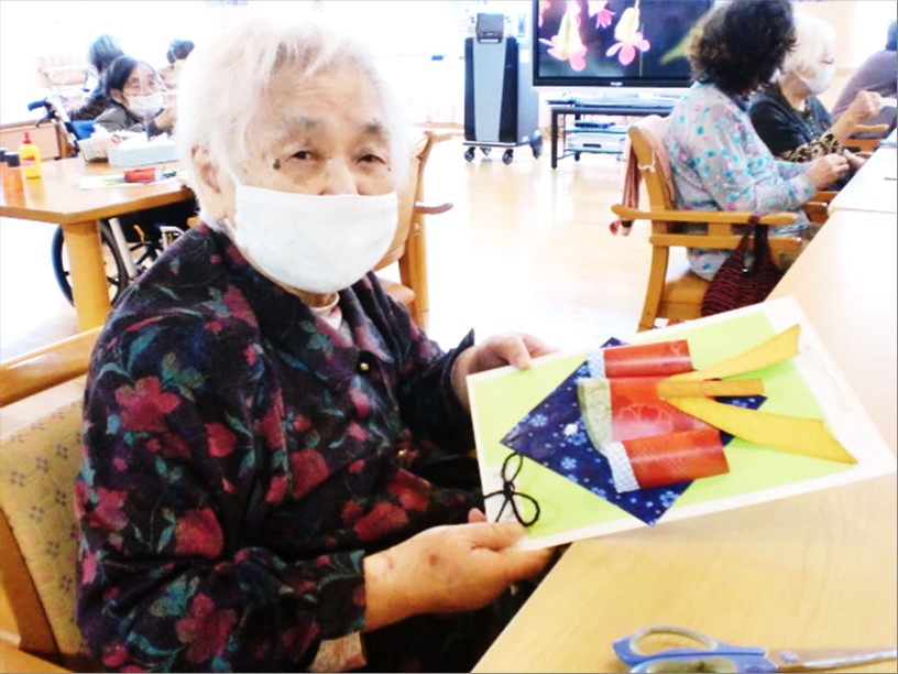 完成品を見てみるととてもカッコイイ兜が出来上がり、皆様それぞれ「孫にあげたい」と笑顔で話されている方や「すごく立派なものが出来たよ」と完成品を眺めている方もおられました。