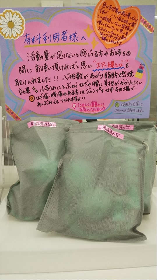 縄跳びは全身運動で、脚や腕だけでなく体幹まで鍛えることができ♬心拍数が上がりやすいのでマシン運動と組み合わせることで脂肪燃焼効果促進☺