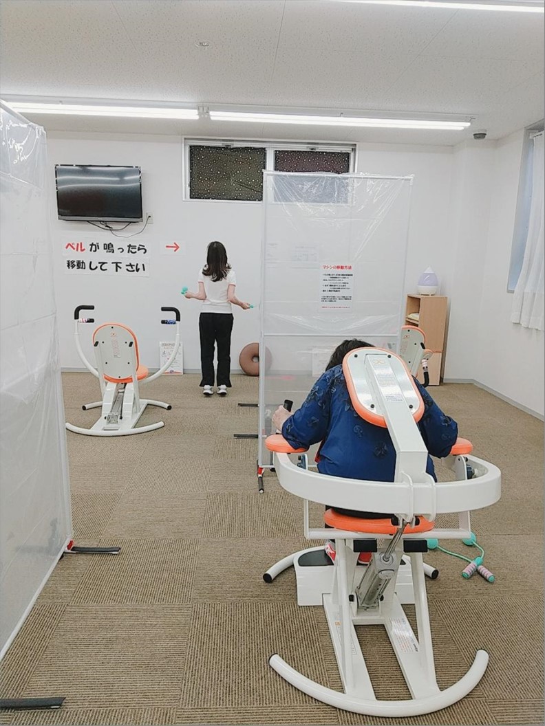 『多世代交流プラザ(まちかど健康空間)』は、マシン運動と有酸素運動を交互に30秒ずつ行うサーキットトレーニングの施設です。