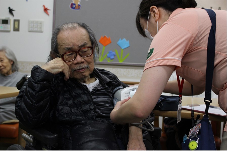 接種前にはバイタルをチェック、しっかりと体調確認を行います。
