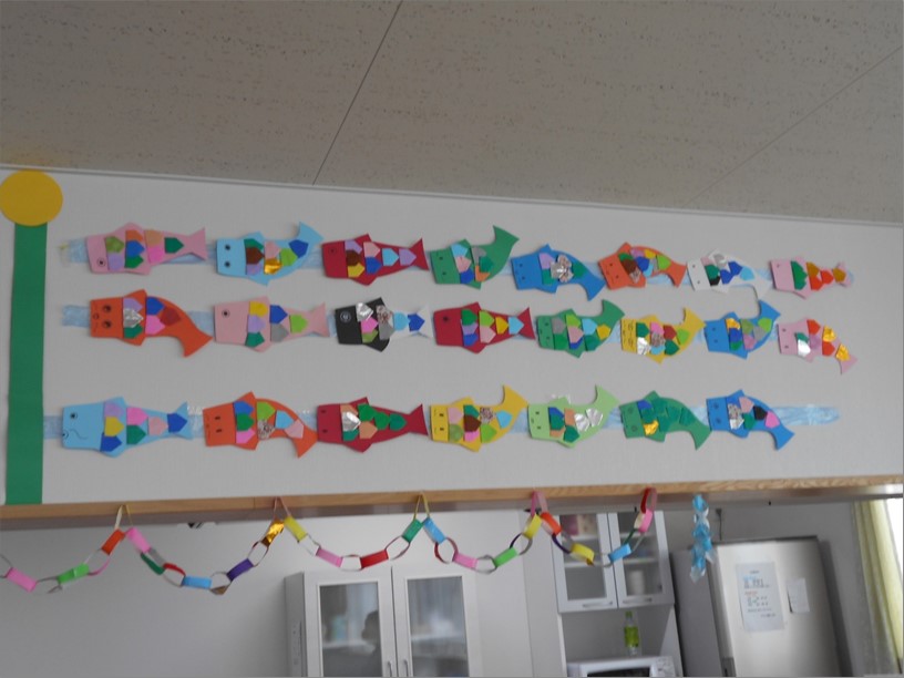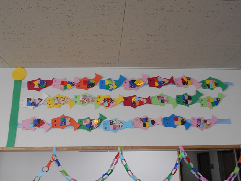 各フロアに皆様が作った鯉のぼりを飾りましたので、一部をお見せしたいと思います。