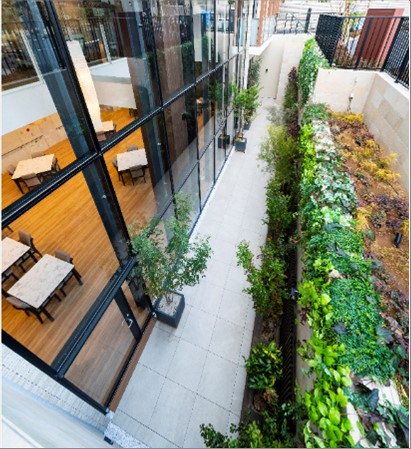 サンクンガーデンとは、一般の道路や地盤より低い位置につくられた半地下の広場や庭園のことを言います。