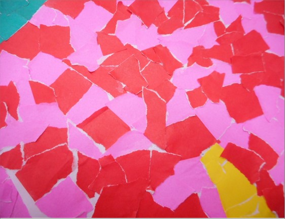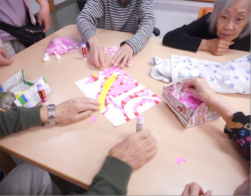 皆様に色紙ちぎって台紙に貼っていただき、台紙をつないで完成です。