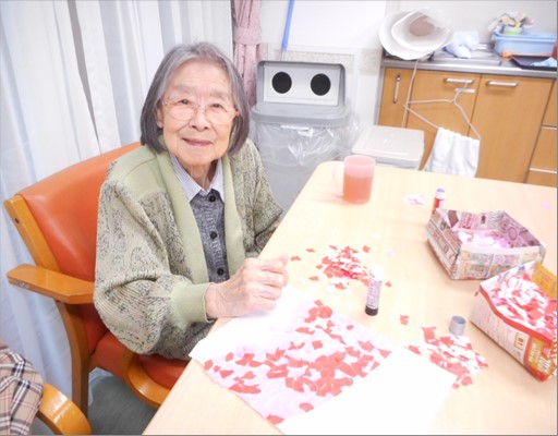 オリジナルは緑色なのですが、皆様と相談して、サ高住は職員の制服と同じ赤色ベースのトマトカラーで制作を致しました。