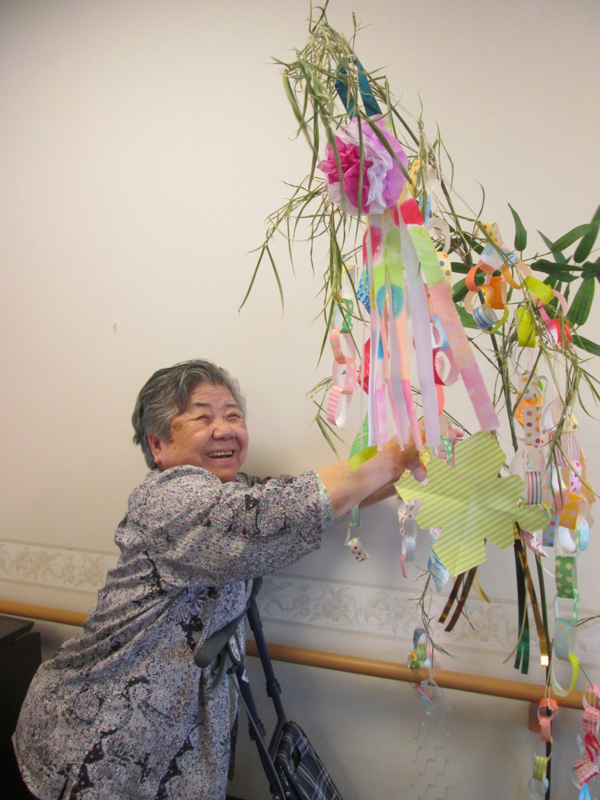 その笹にご入居者様お一人お一人が願いを込めて短冊をつけていきました。