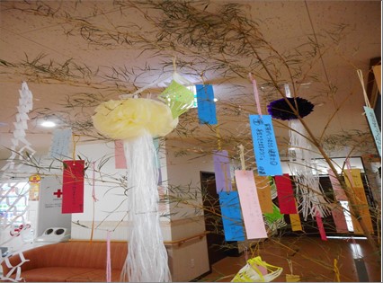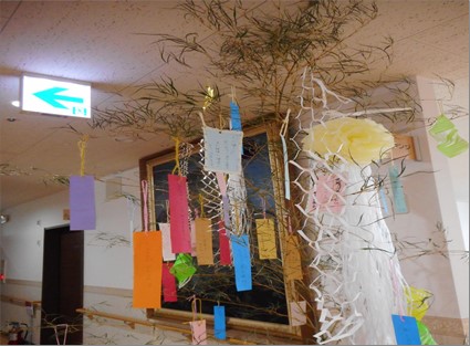入居者様皆さまに書いて頂いた短冊や七夕飾りを飾っております。