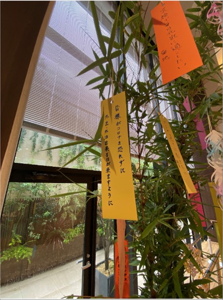 皆さま、様々な願い事を書いて下さり、「早くコロナが終わるように。」や「遠くへ旅行に行きたい。」など書かれておりました。