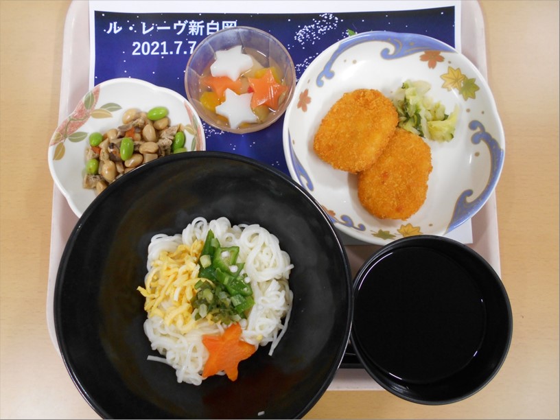 7月7日(水)は七夕です。『ル・レーヴ新白岡』では、お昼ご飯を天の川にちなんだ七夕そうめんが提供されました。