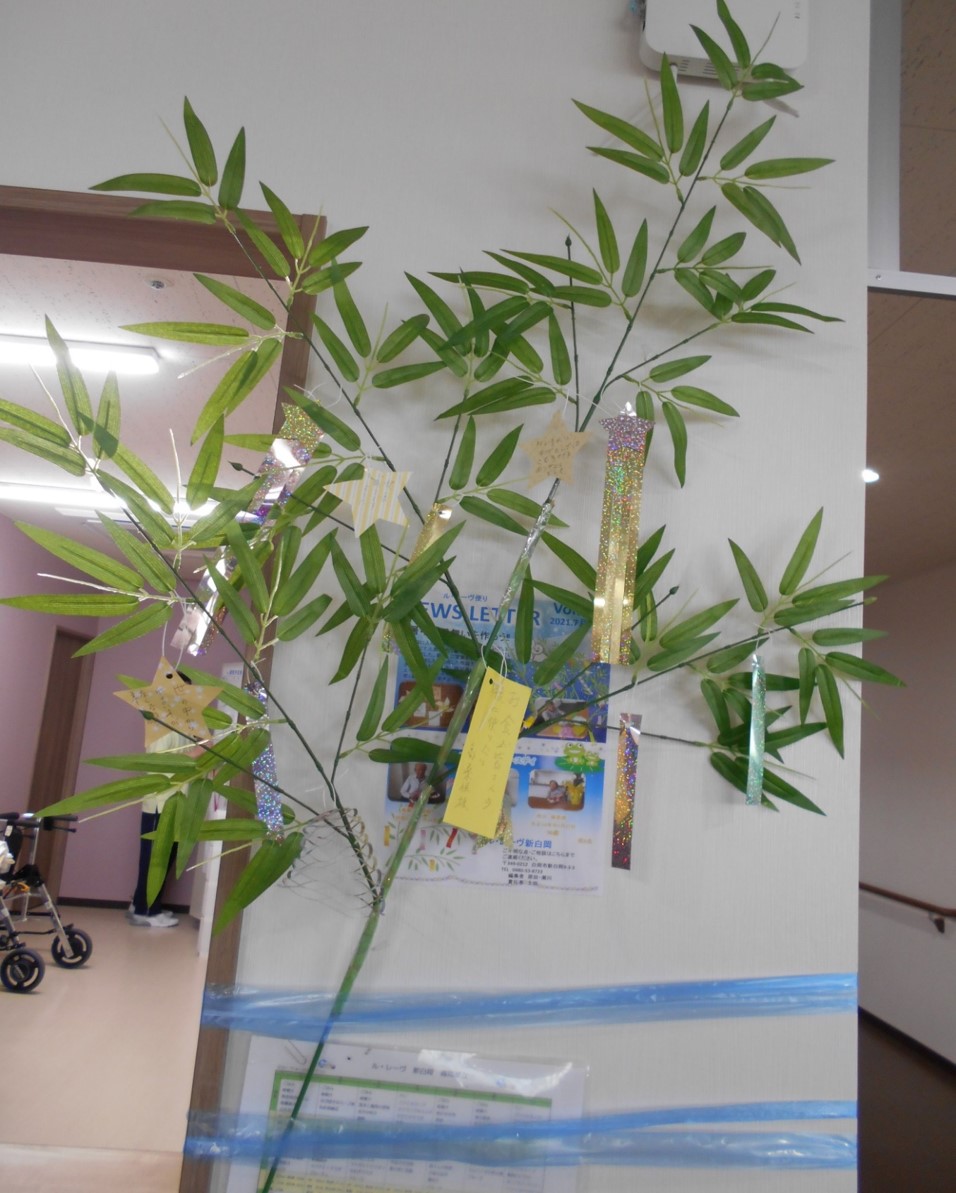 食堂には、ご入居者様に願い事を書いていただき、飾りました。