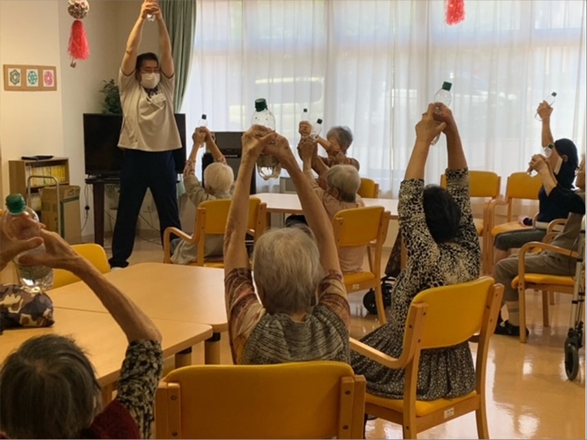 午前中は、入浴やレクリエーション!!機能訓練指導員のお兄さん???の体操!!