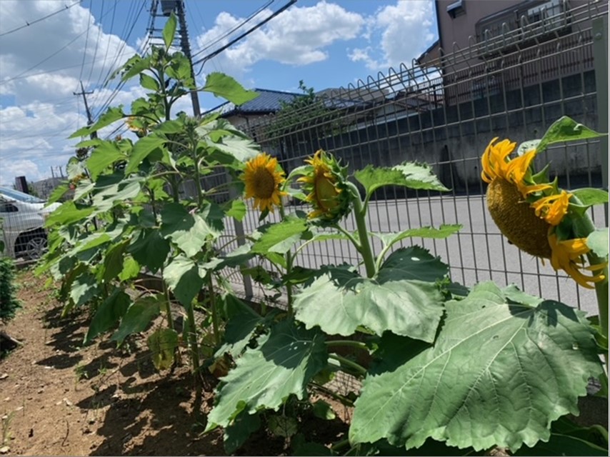 暑い中でも、ご入居者様が植えたひまわりは、元気いっぱい私たちを楽しませてくれています。