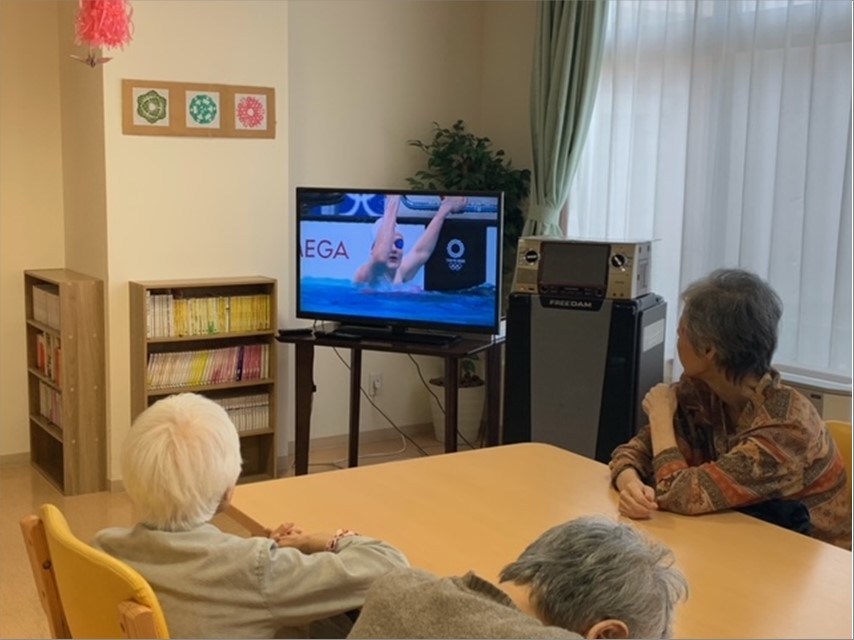 フロアでは、テレビを観ながらオリンピックを応援している方も。