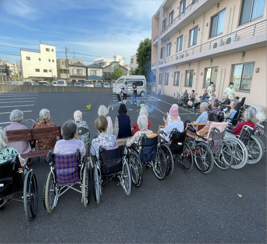 そんな状況の中でも、ご入居者様に少しでも風物を感じて頂く為に花火大会を実施しました♪♪