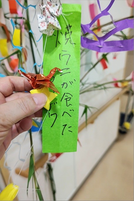 7月といえば七夕ですね。皆さん願い事はされましたか? ご入居者様にも短冊を書いていただきました。