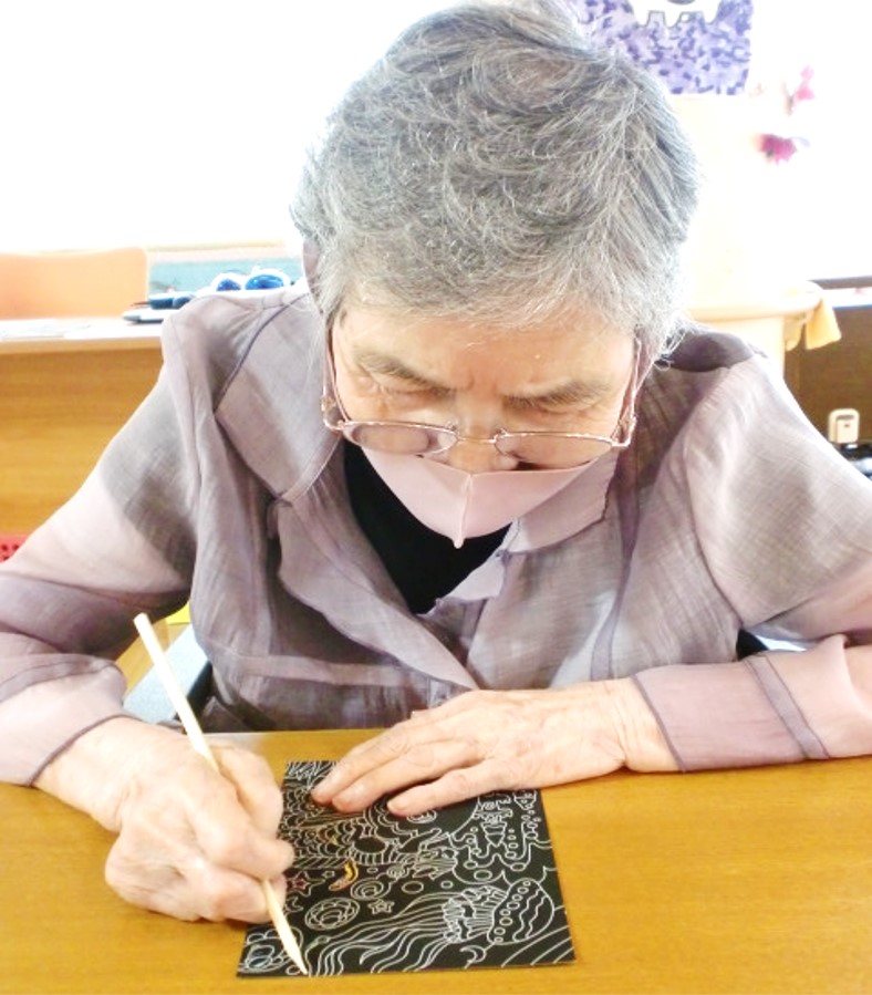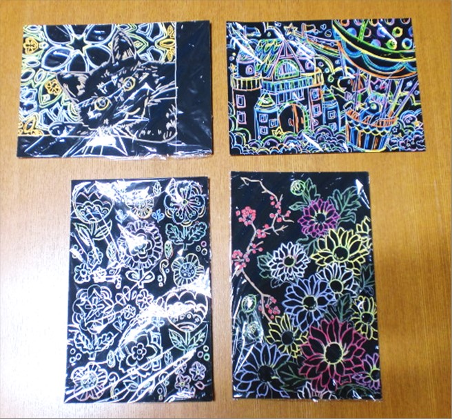 本日も、ご利用者様の笑顔をお届けしたいと思います。今回は、「スクラッチ塗り絵」です!!