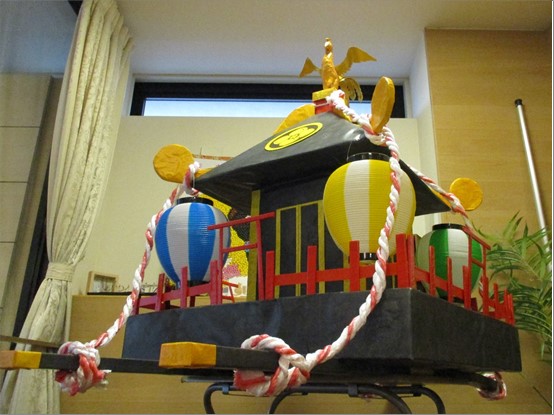 そして法被を羽織り、担いだていで(ほぼ職員で持ち上げています)記念撮影。