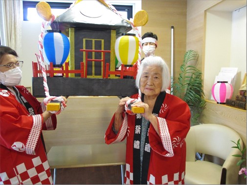 例年ですと窓の外を町内の子供神輿が元気よく通りがかり、入居者様も手を振って大盛り上がり!となるのですが、今年も町内のお祭りはすべて中止となってしまいました。