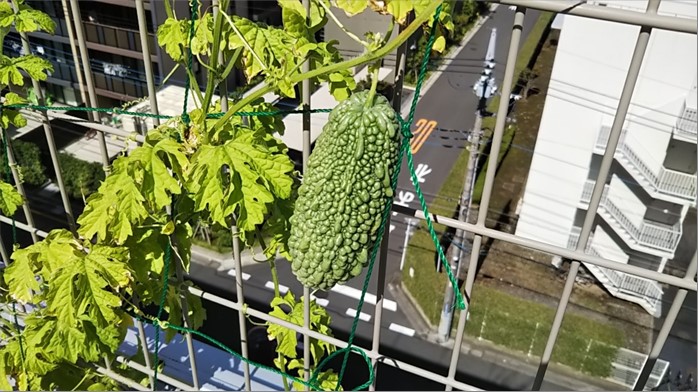 今年の酷暑で上手く育つか心配しておりましたが、私達の心配をよそにすくすくと育ち、現在可愛らしいゴーヤが五つほどなっています。