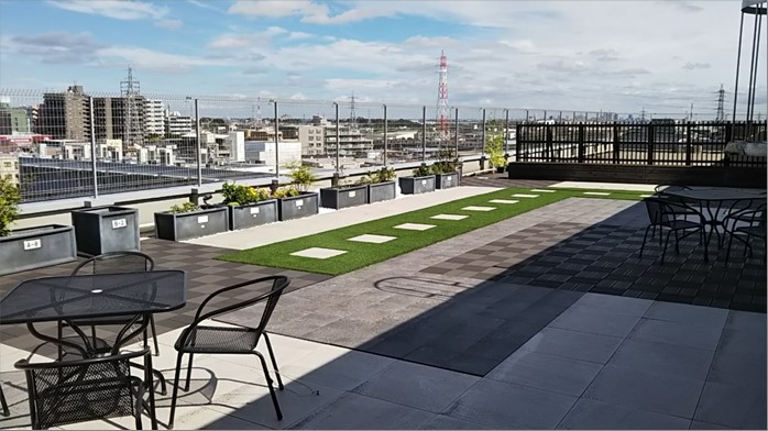 屋上テラスは景色も素晴らしく、気持ちよくお散歩して頂けます。