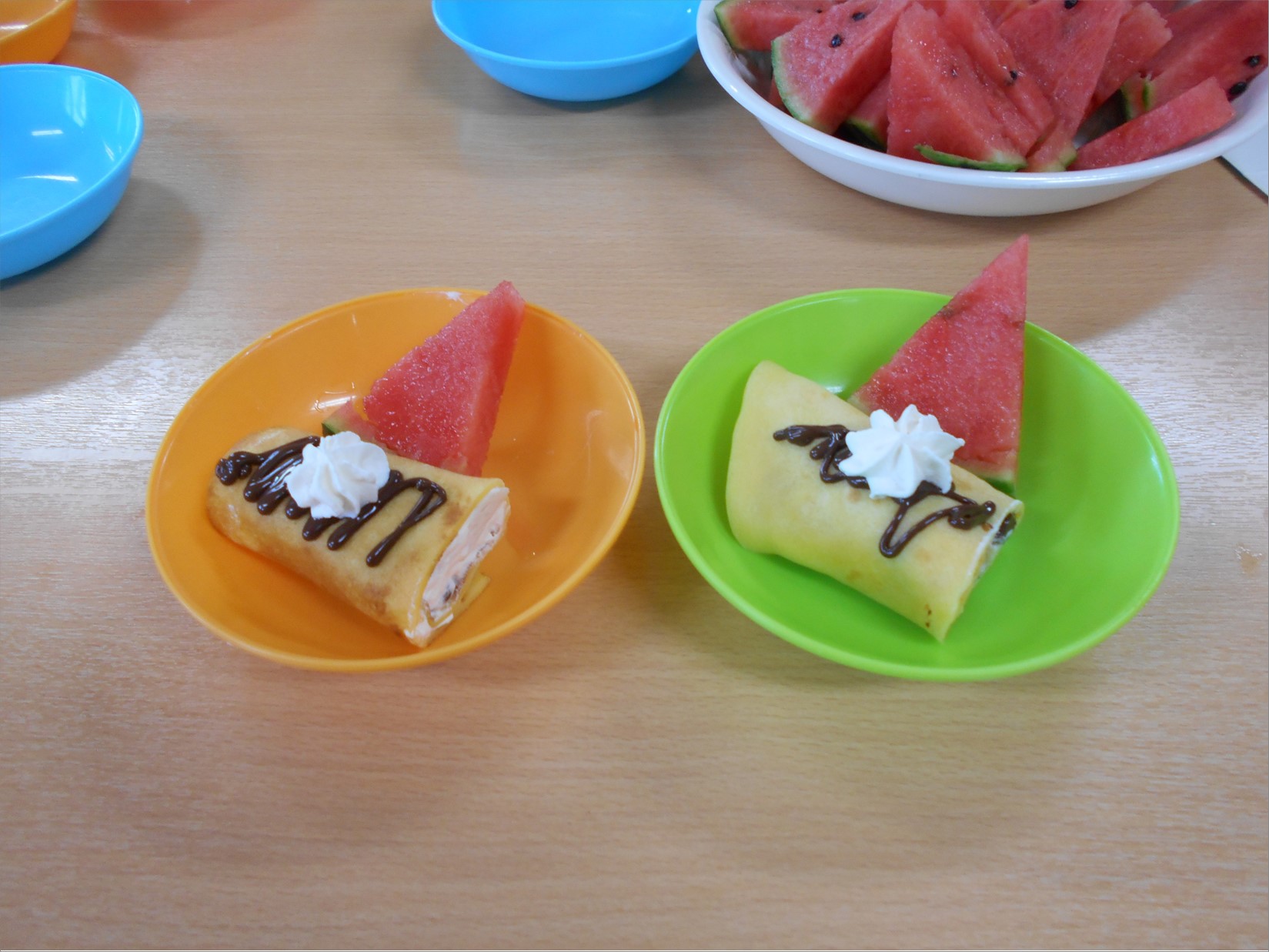 フルーツやチョコ、生クリームをトッピングして美味しいクレープが出来ました。