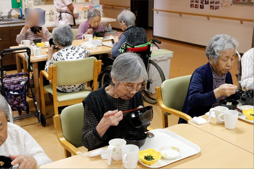 昼食は特別食の「鰻ひつまぶし」をご用意、お食事中に温かいお出汁もかけて、”二度おいしい”を味わっていただき、「おいしいねぇ~☺」と皆様の笑顔溢れる食事会となりました。