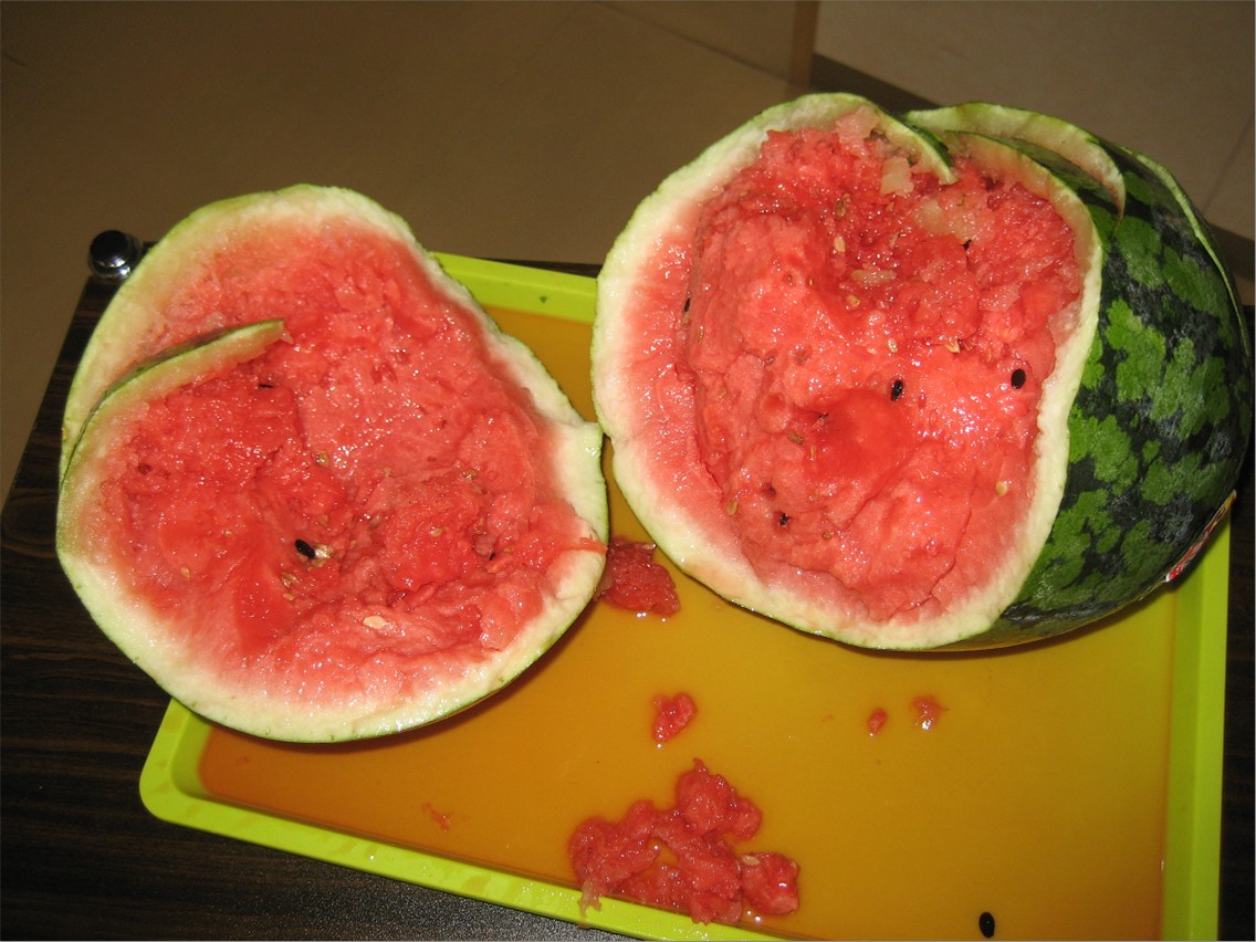 皆さん、なかなか割れないスイカに悪戦苦闘??
