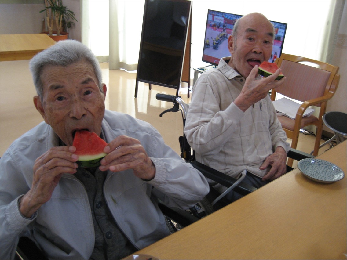 「楽しかったよ」「甘いスイカね」と皆さんと一緒においしくいただきました。