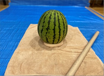 まず最初は、納涼祭開催の景気づけとしてスイカわりを行いました!