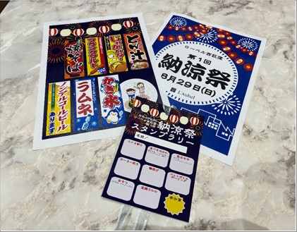 又、納涼祭一日のスタンプラリーを用意し、各種目を終えてスタンプを押してもらい全部集めた方には、納涼祭一日で撮った写真の中で、とびきりいい写真を選び、素敵な写真立てにいれ、後日プレゼントさせて頂きました。