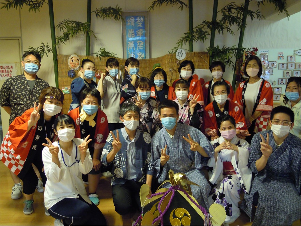 納涼祭最後の締めくくりは、職員手作り神輿と盆踊り。