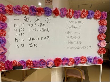 またコンサート後は、年祝いの方々の発表と色紙の贈呈、及び全ご入居者様に敬老の日をお祝いするカードをお渡しさせて頂きました。