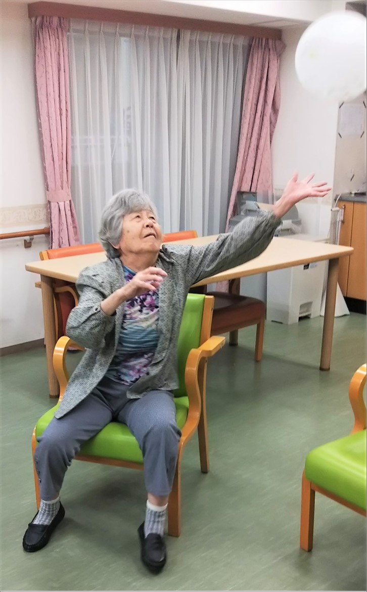 サ高住のご入居者様達は、8月は特にボール使用のレクをしてボールを投げる運動に慣れ親しんでいただきました。