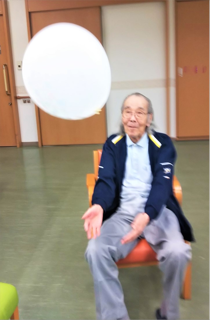 参加者は各階5名、椅子(車椅子)座った状態で円になり(立ち上がるのは×です)風船を打ち合います。
