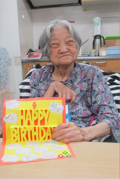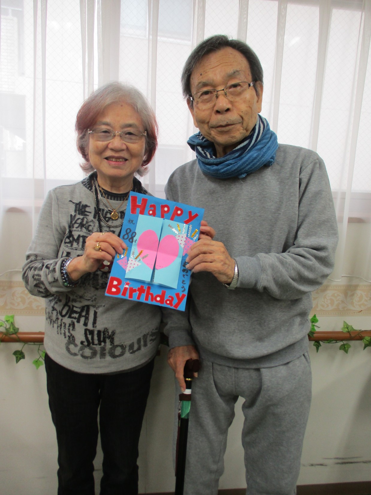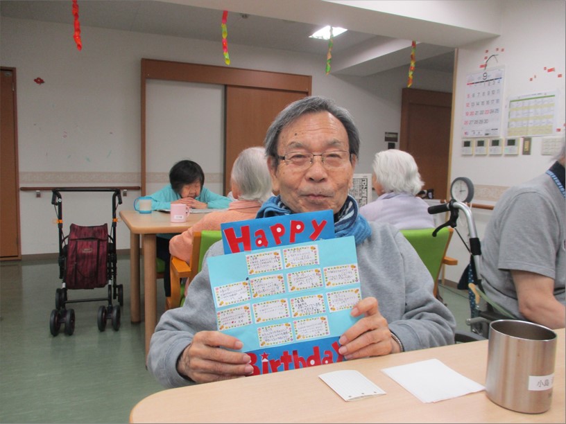 皆で楽しくお誕生日の歌を合唱した後は、職員が各々趣向を凝らしたカードをプレゼント。