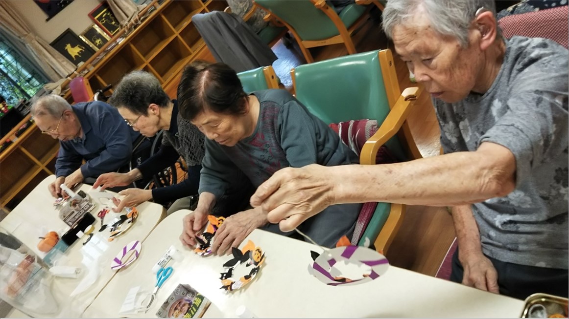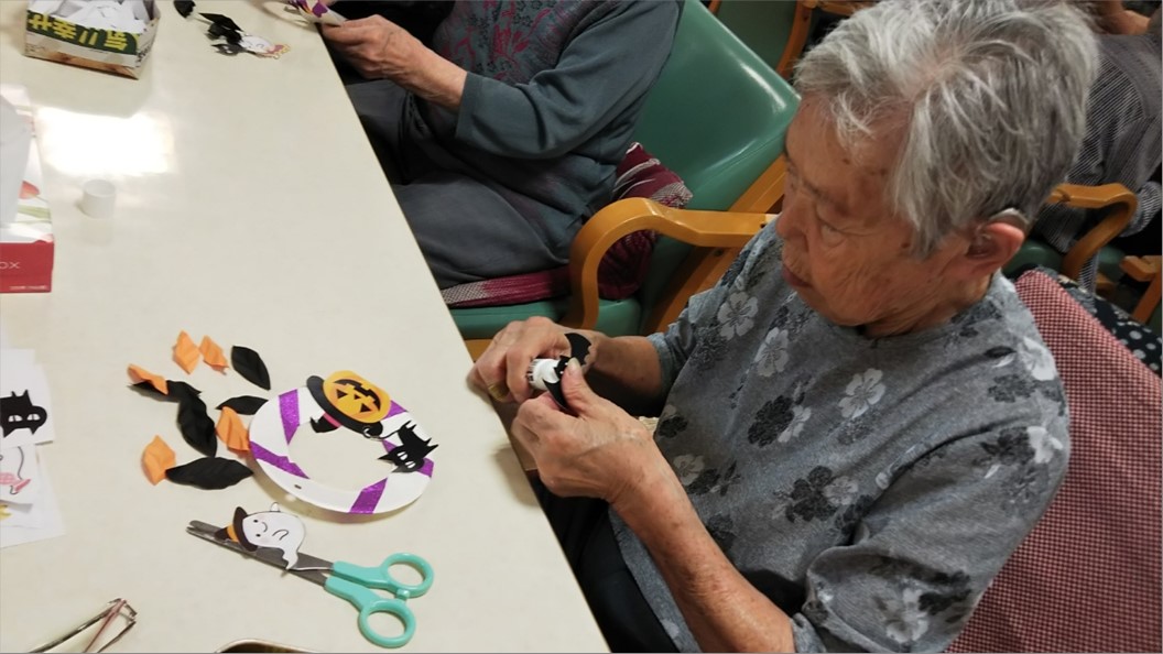 10月といえばハロウィンということで、まだまだ暑いですが「ハロウィンリース作り」をしました。