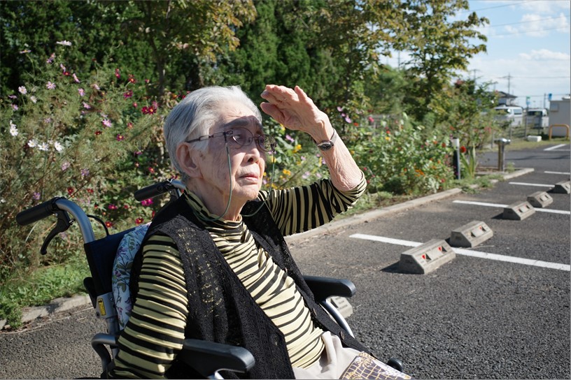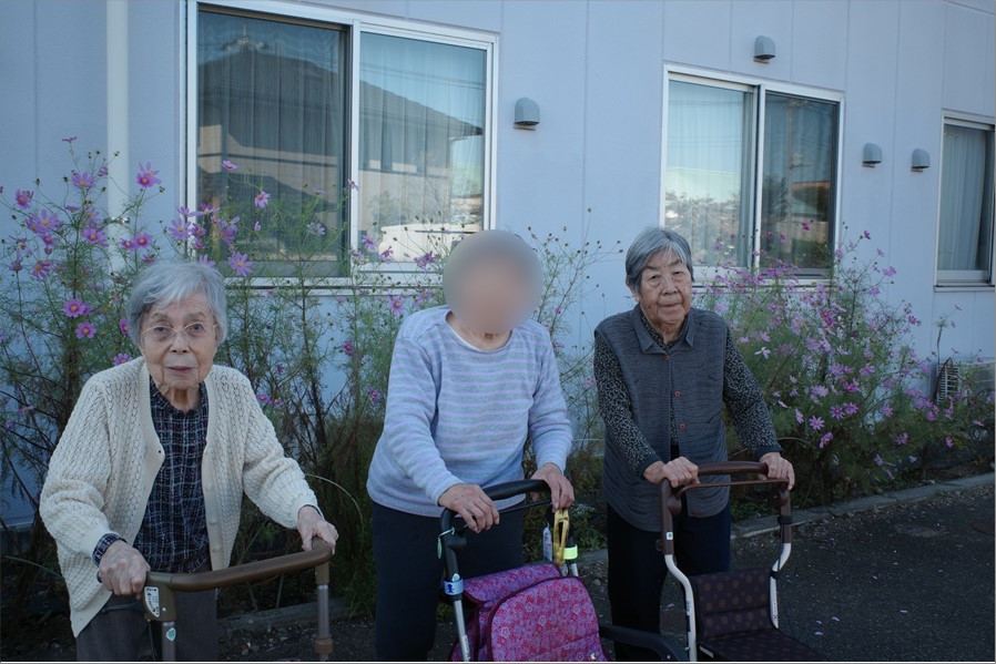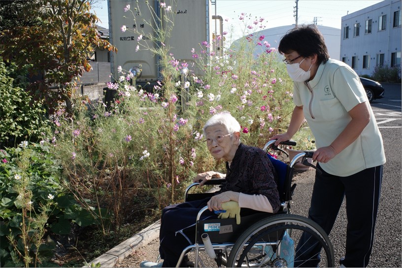 「まぁ~きれいに咲いてるね」「私はコスモスが大好き!」「やっぱり外は気持ちいいね!」などと会話も弾み、おいしい空気を胸いっぱいに吸いながら、楽しいひと時を過ごされました。