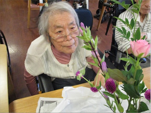 美しいお花に囲まれ、とっても笑顔が素敵な皆様。おしゃべりにも花が咲きます。