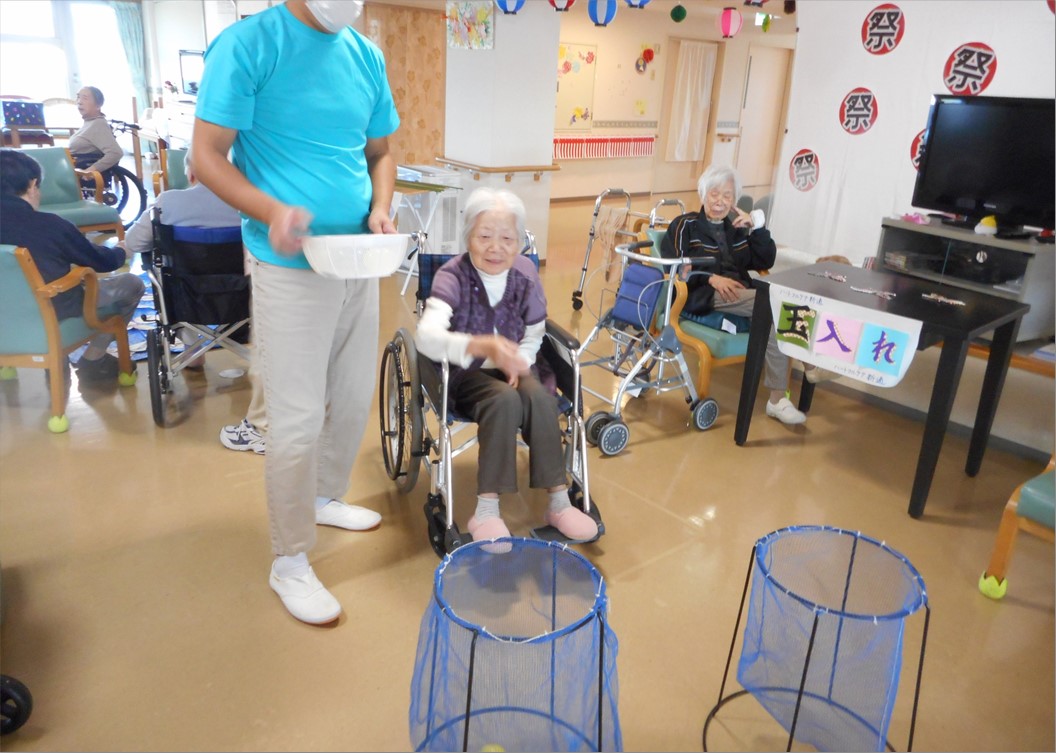 3階にゲーム会場・2階にはおやつバイキング会場を設置し、密を避けながらご入居者様に楽しんで頂きました。